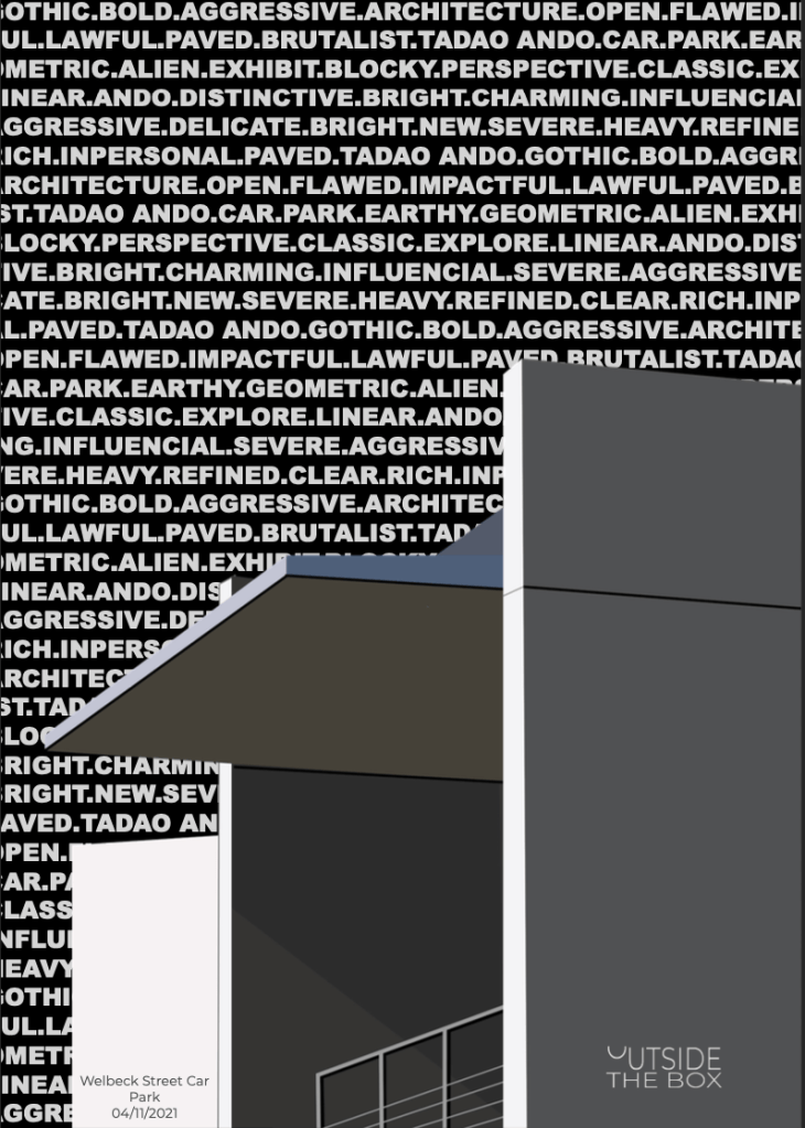 The aim of the project was to create a space that allows individuals to experience a variety of Tadao Ando buildings without having to travel around the world. The Tadao Ando exhibition highlighted a range of areas around the Welbeck parking lot using frames, when you look through them you will see spaces similar to those found in many of Tadao Ando’s buildings.